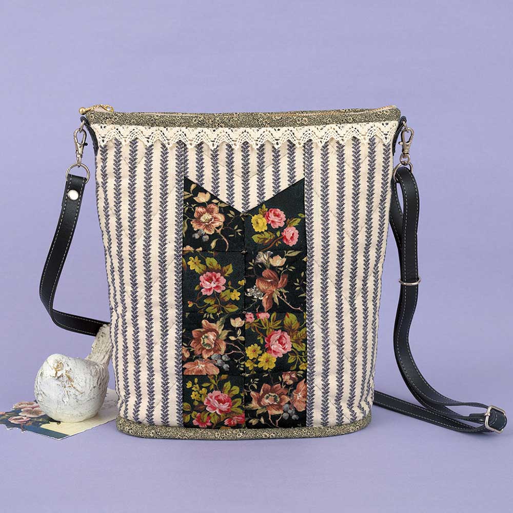 【キット作り方つき】おしゃれなストライプ柄と花柄を組み合わせたシンプルでスタイリッシュなデザイン。サイズも丁度よくお洋服にも合わせやすい。反対側同じデザイン。