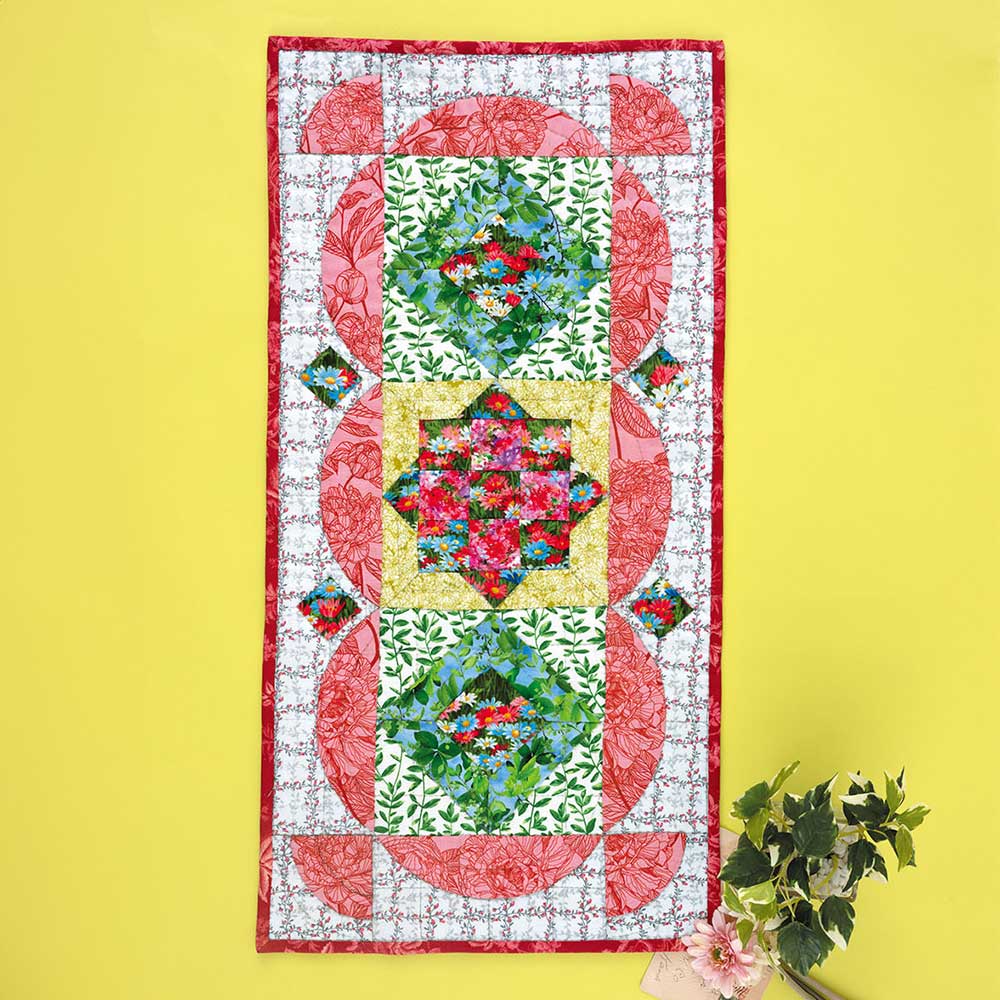 【キット作り方つき】縦長の形が西洋の庭園のよう。ピースワークとスカラップのアップリケで、春の花壇をイメージしました。