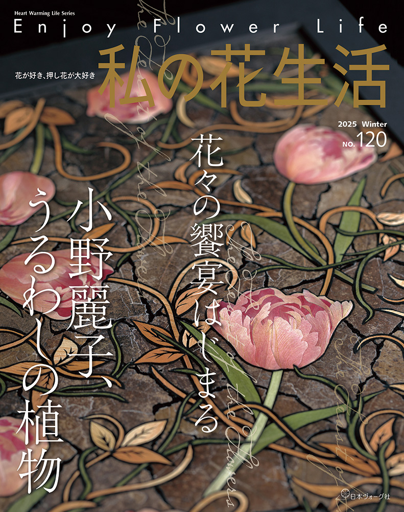 巻頭は「小野麗子、うるわしの植物」と題して、日本だけでなくアジアでの評価も高い、小野麗子さんの特集をします。華麗でありながらパワーを感じ、観る者にインパクトを与える小野さんの植物たち。押し花のジャンルを超えた花々をご紹介。さらに緻密な花の組み立てもプロセスを追って、詳しく解説をします。また教育者の側面にスポットを当てた「教育者としての牧野富太郎」の後編をお送りします。佐々木えみこさんの「パステルレッスン帖」、「TOKYOパークガーデン」など、連載陣も絶好調! 大阪・関西万博で注目を浴びた、バルトパビリオンの正面入り口に展示された圧巻の300種類の植物標本のレポートなど、最新情報もお届けします。