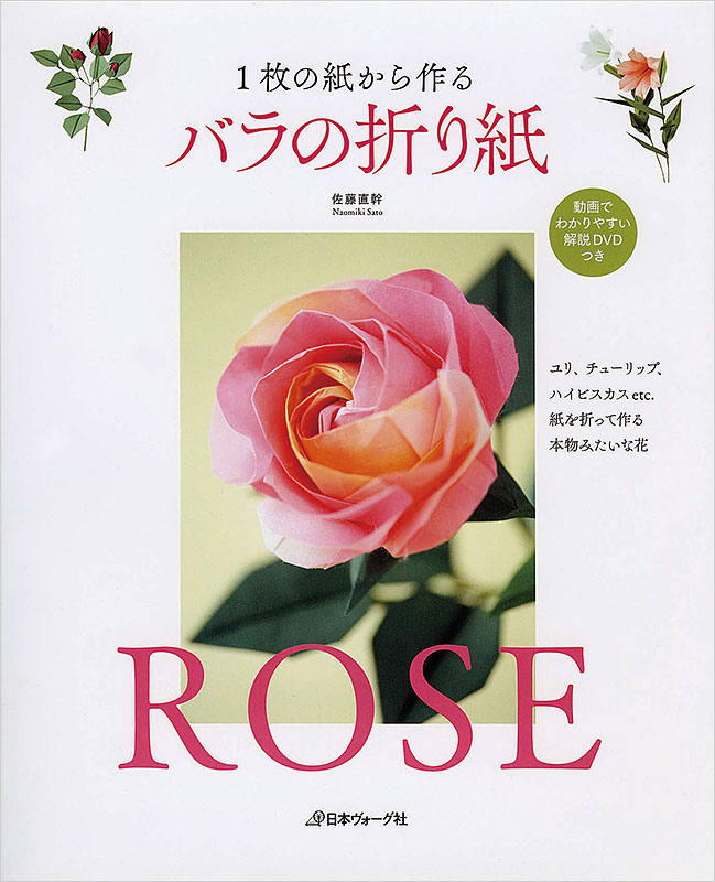 世界中の人が憧れる、まるで本物のようなバラ。正五角形に切り出した1枚の紙を折るだけでバラの花ができあがります。ガクや葉などのパーツをつけて組み立てれば、より完成度が高まります。これまでの折り紙のイメージを覆すような写実性の高い作品群を、すべて詳しい折り図つきで紹介。さまざまな種類のバラのほか、同じく正五角形から作るハイビスカス、正六角形から作るチューリップ、ユリなど、比較的簡単な花も掲載。折った花の飾り方や、折った花を使って作る雑貨の作品例も提案。暮らしの中で役立てるアイデアも満載です。折り方のポイントをわかりやすい動画で収録したDVD付き。