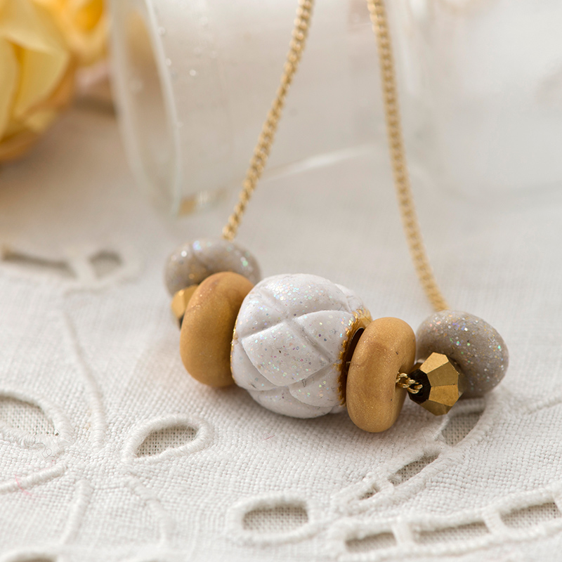 クレイ(18Kゴールド、フロストホワイトグリッター、ホワイトゴールドグリッター)、コンディショニングクレイ、ネックレスチェーン、チューブパーツ、ヒキワ、丸カン、ガラスカットビーズ