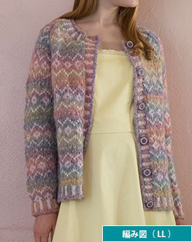 編み図【配送】 パステルカラーの編み込みジャケット(LLサイズ)
