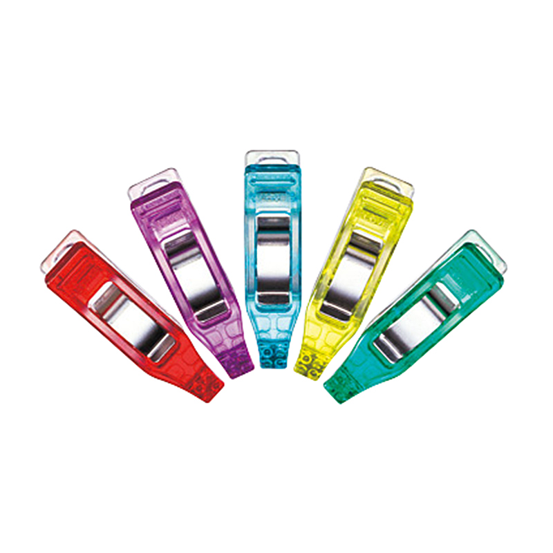 ピンポイントで止めることができる先細タイプの仮止めクリップ。普通地や薄手の生地や、まち針で止めにくいチュールやオーガンジーの仮止めに もお勧めです。