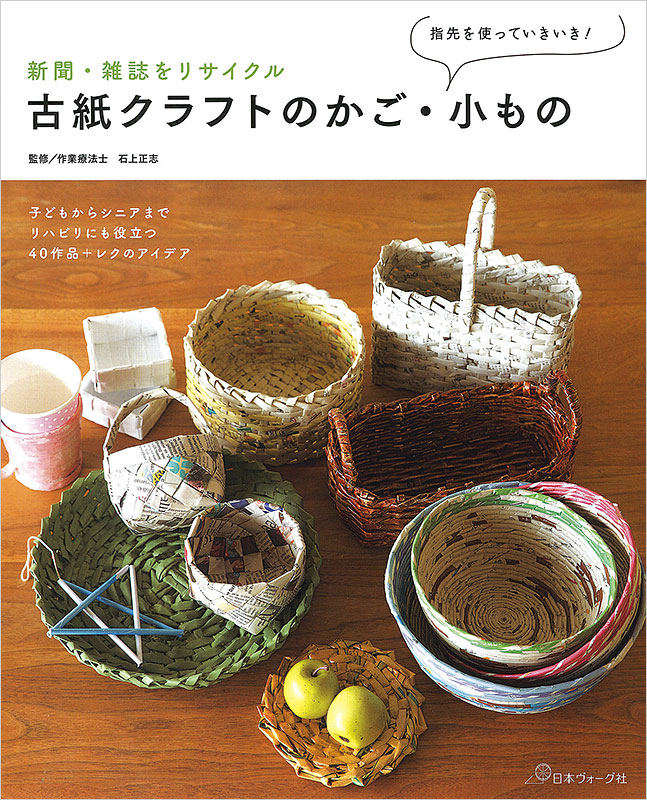 This book enables you to make various items using discarded magazines, catalogues and newspaper. By joining or weaving parts of rolled paper, you can make not only baskets, plates, trinket boxes, toys like spinning tops, but also larger projects such as an umbrella stand or a slippers rack. As the author, an occupational therapist, thought through the method as rehabilitation for his patients, this title includes lots of pieces that everyone from kids to the elders can enjoy making them. Costs almost nothing in materials, as you can reuse the unwanted things! Eco-friendly and wallet-friendly at the same time.