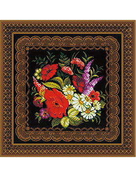 【キット作り方つき】ロシアの伝統絵画技法、ジョストボ絵画をクロスステッチで繊細に表現。クッションにも仕立られます。上級の方向き。