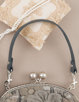 【別売り】「すてきな口金のハンドバッグポーチ[グレー]」に使用の口金と持ち手のセットです。口金には大きめのプラスチック玉がつき開閉しやすくなっています。持ち手の細さもエレガント。