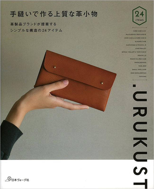 「つくる」をコンセプトにはじまった革製品ブランドURUKUST(ウルクスト)。今までにない新しいデザインを作り出す.URUKUSTが、レザークラフト初心者でも作りやすいよう、できるだけ扱いやすい工具を使い、できるだけシンプルな構造と行程で作品を提案する初めての著書です。掲載アイテムは、カードケース、コインケースなど小物からバッグまで、普段使いで楽しめる24作品。型紙の作り方から革の裁断、手縫いの方法、金具の付け方まで革小物づくりに必要なプロセスも詳しく紹介しています。使い込むほどに上品な艶と味が楽しめる上質な革で作る、愛着を持って使える作品が満載です。