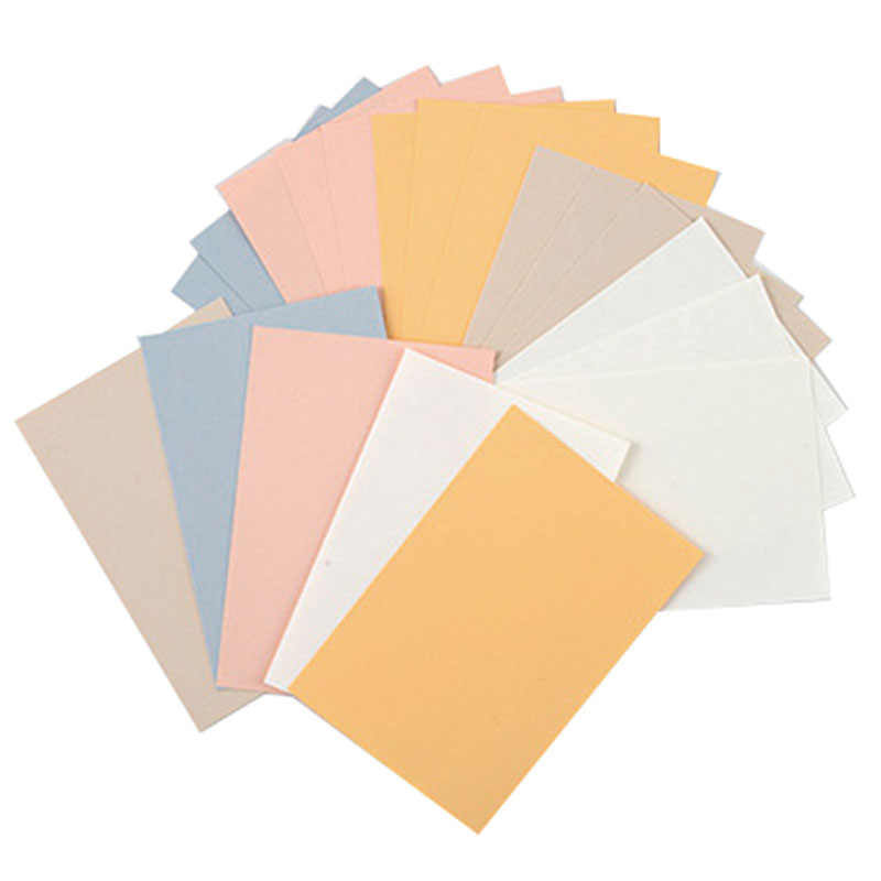 ポストカードサイズのカラーカード20枚セット。5色各4枚入り。台紙に刺しゅう作品を貼りつけるのはもちろん、台紙をくり抜いて貼り合わせたりとマルチに使える台紙です。