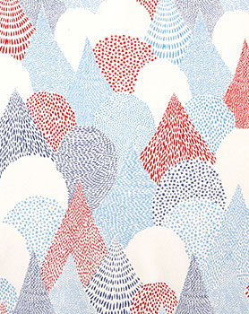 バッグのほか、スカートやパンツなどのウエア類、テーブルクロスなどのインテリア小ものなど、幅広い用途に使えます。やわらかな森の色合いを点描の濃淡で描いた人気のデザインです。通気性よく織りあげたオックス地。お求めやすい10㎝単位での販売です。