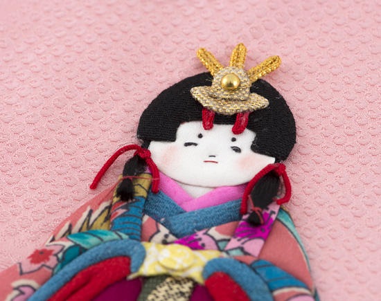 【キット作り方つき】【古裂】 穏やかな表情のおひなさまと官女たち。着物の重なりや髪飾りなどを、押し絵でリアルに再現しています。 ※古裂は古い着物をほどいて作るため、写真とまったく同じもののお届けは出来ません。