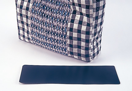 はさみやカッターでカットできる低発泡ポリエチレン製のボード。そのままバッグに入れて使えます。ひと手間かけて中袋と同じ布で包んでも。