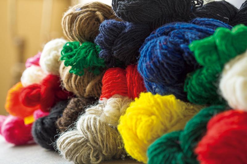 竹崎さんの場合、織りに向かう前の糸づくりに掛けるウェートが高い。土のついた原毛を洗いながら、ほぐして、羊毛の独特の質感を感じながら染め、カーディングを経て糸を紡ぐまでの作業が全体の8割を占める。ただ異なる種類の原毛同士を混ぜることはほとんどしないという。原毛が本来持つ特徴を殺さないためだ。