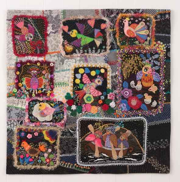 ●作者のコメント フェルトのブローチを見た時、何か作品にならないかなと考えました。最初に作ったのは船に乗った鳥。時間はかかりましたが楽しくて、ひと月に1枚ずつ作りました。