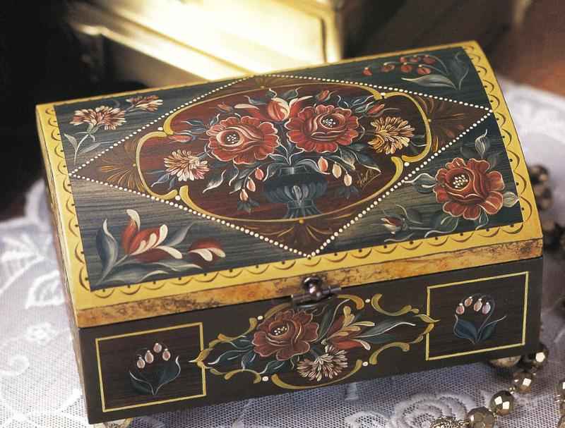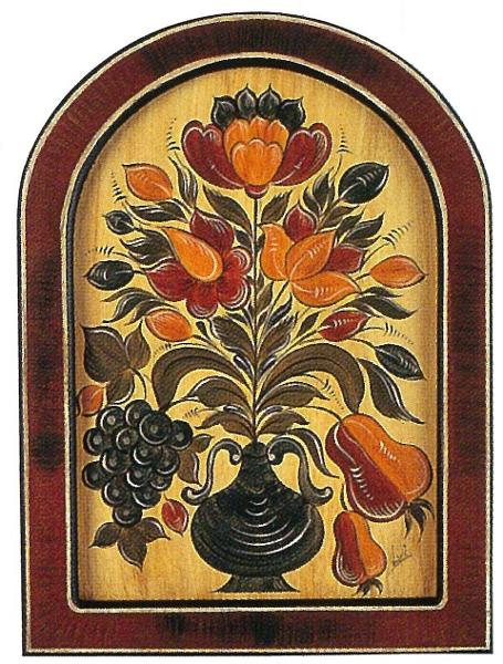 「バウエルン」は「農民・田舎風」、「マーレライ」は「絵」を意味するドイツ語です。教会や貴族の館の、彫刻や絵画で装飾された豪華な家具を模して、市民や農民たちが比較的安価な絵付けで家具を装飾するようになりました。ドイツ、オーストリア、スイスなどのドイツ語文化圏で発達し、ハプスブルク家と婚姻で結ばれたナポリなどでも見られます。