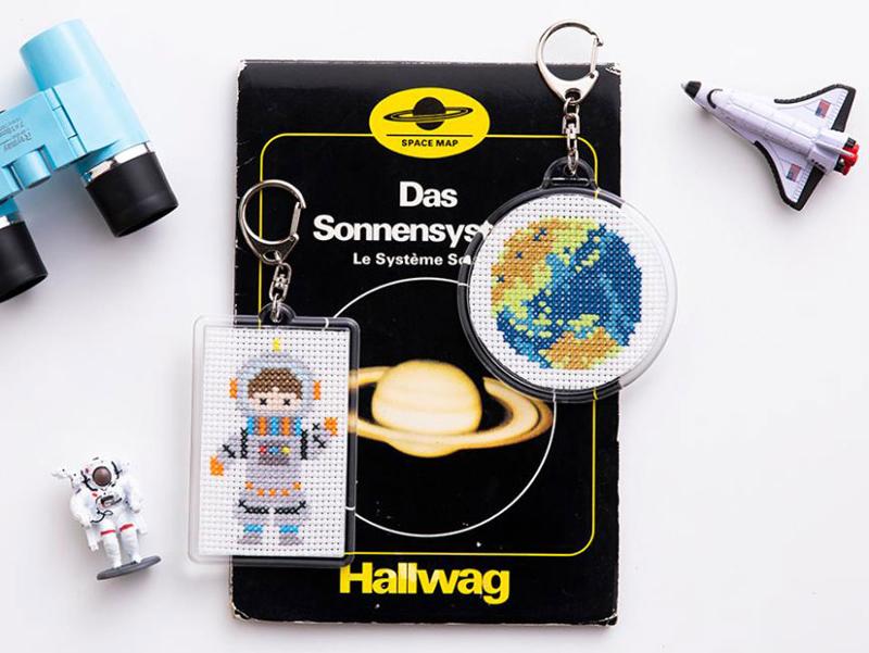 わくわくドキドキ、夢がふくらむ宇宙飛行士&地球のキーホルダーセット。