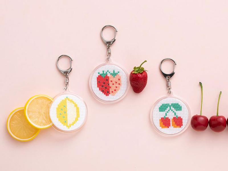 小さくてかわいいフルーツのキーホルダーセット。色数が少ないのではじめてでも楽しく作れます。