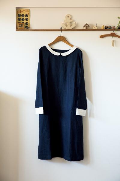 衿とカフスを白地で切り替え、フォーマルな雰囲気に仕上げたフラットカラーワンピ。こちらも『大人のまいにち服』掲載作品。