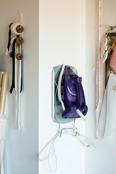 壁に取りつけたアイロンホルダーはIKEAで購入。「サッと手に取れ、作業もスムーズ」