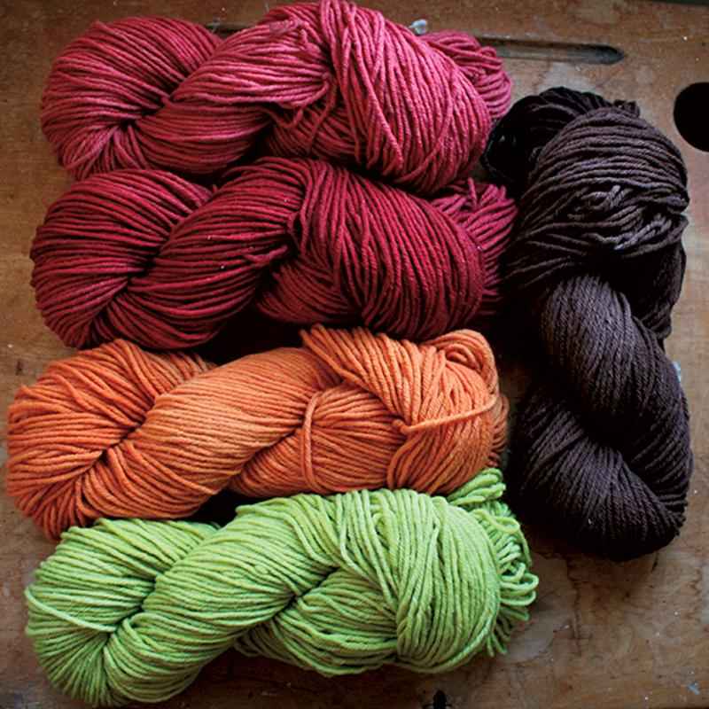 今から約10年前、彼女はそんな大都会での生活に決別し、ハンドクラフトのウェブサイトEtsyに自分の店を開きました。最初は自分で染めたファイバーを自ら紡いだ糸を販売していましたが、5年前からはアメリカ国内の農場と紡績所の協力をあおぎ、羊から糸まで100%アメリカ国内で生産した、完全なオリジナル糸ばかりを染めて販売する、一味違うハンドダイヤーとなりました。