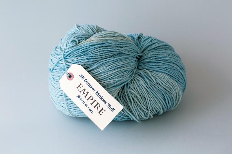 今回取り上げるのは、「セーターまるごと1着分で1カセ」の糸。びっくりするほど大きなその糸Empire(エンパイア)を作っているのは、アメリカ・ニューヨーク州のJill Draper Makes Stuff(ジル・ドレイパーのものづくり)というインディペンデントのハンドダイヤーです。