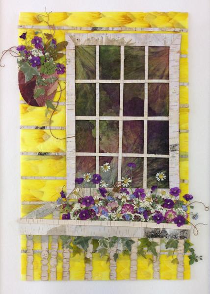 「素材となる花や葉の色、形、大きさは自然から与えられ決まったものです。その制約の中から、新たに押し花画を生み出していくところに喜びがあります。台紙となる紙のうえに、花びらをそっと置いて作業をしているとき、好きな針仕事や編み物をしているときと同じように、 とても静かな時間が訪れ癒されていきます。だんだん押し花画として形を成していくとき、うれしさがこみ上げ、 自然の恵みを通して自分を表現できたことに、深い満足感を覚えます。」