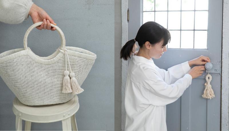 バッグにつけたり、ドアノブや取っ手にかけたりするだけで、ぐっと印象が変わります。