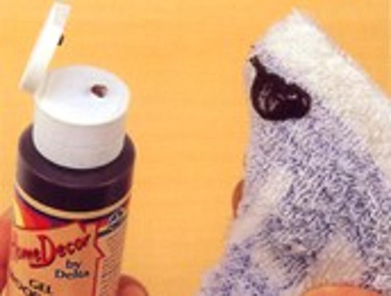 ③その布をペーパーパレットの上でこすり、布にステイン剤をなじませてから塗ります。