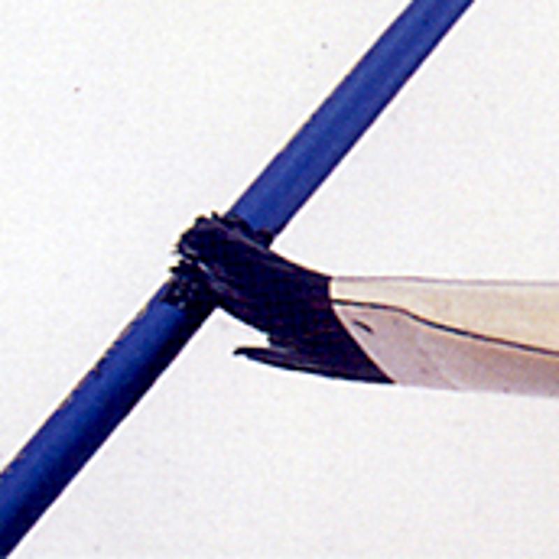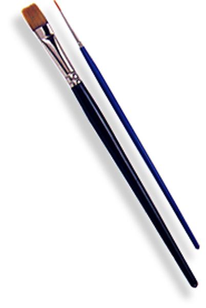 ①平筆に絵の具を含ませ、細い柄の部分にあてます。