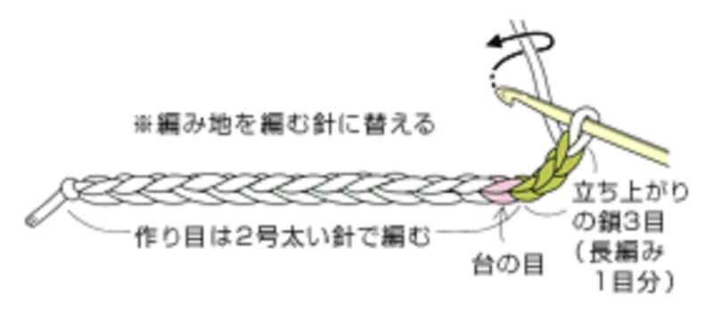 長編みは立ち上がりの目が1目です。鎖の裏山を拾いながら編み進みます。