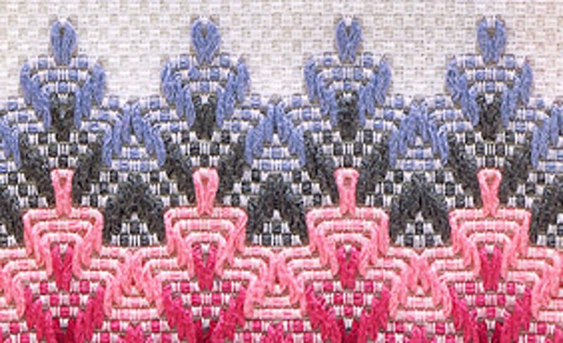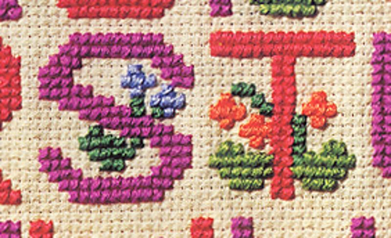 古代ビザンチン時代に、イタリアを経てヨーロッパから全世界に広がったという古い歴史を持つ刺しゅうです。布目を数えながら表面に2本の糸を交差させます。糸は中央で交差し、交差の方向を一定に並べて刺します。