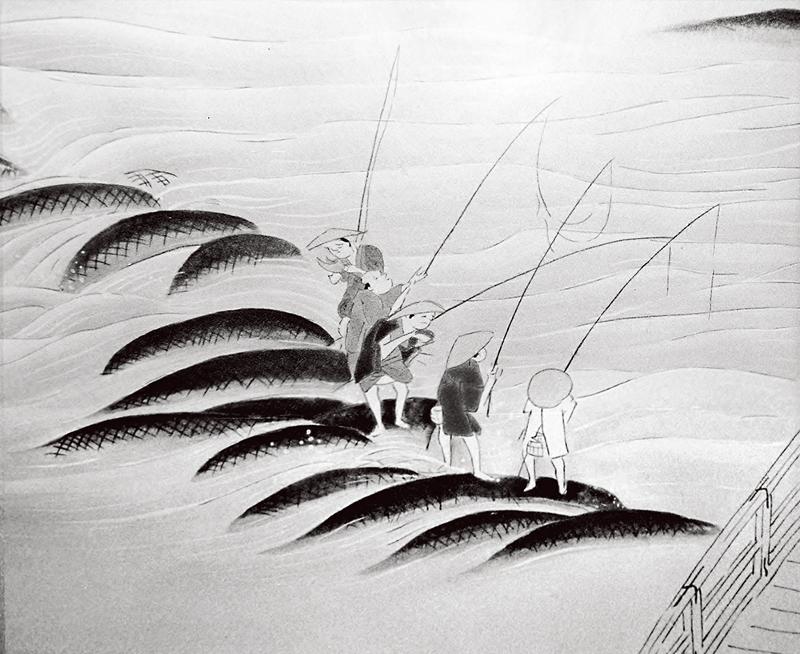 江戸時代の川釣りの様子。この頃、川釣りは武士だけに許された特権でした。