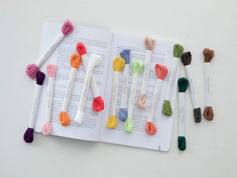 オーガニックコットン糸を天然の植物染料で染めた、ayaさんオリジナル刺しゅう糸「Sunny Thread」の優しくて美しい発色が魅力です。