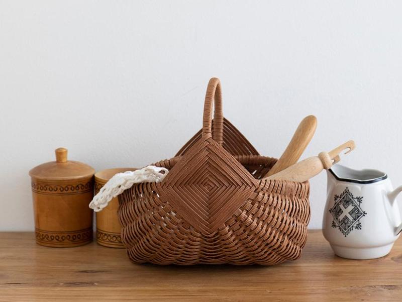 かご口を透かし状に編み上げた ラトビアの伝統的なかご