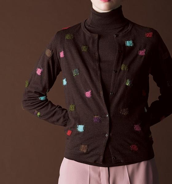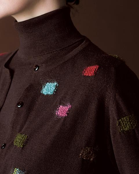 セーターに毛糸で刺しゅうというと、ちょっと難しく考えがち。でもダーニングステッチなら、そんな気負いもなくざくざくと四角く刺してゆくだけです。セーターを広げて、チャコを片手に、どこにどのくらい四角を散らそうか? と印をつけます。数個でも、みっちり沢山でも気分次第。今回はもけもけのモヘア毛糸でガシガシ刺しました。ふんわか毛糸なので、数カ所刺しただけで、なんとなく着飽きた優等生顔のシンプルなセーターが、実は面白い奴だったなんていう発見をして、嬉しい気分になります。