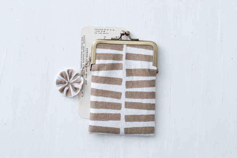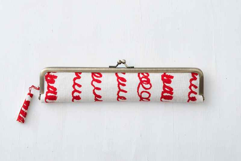 角丸ストレート口金で、縫わずにできるフラットなペンケース。まずは、まっすぐ差し込むだけのシンプルな形で、口金をはめる練習をしましょう。