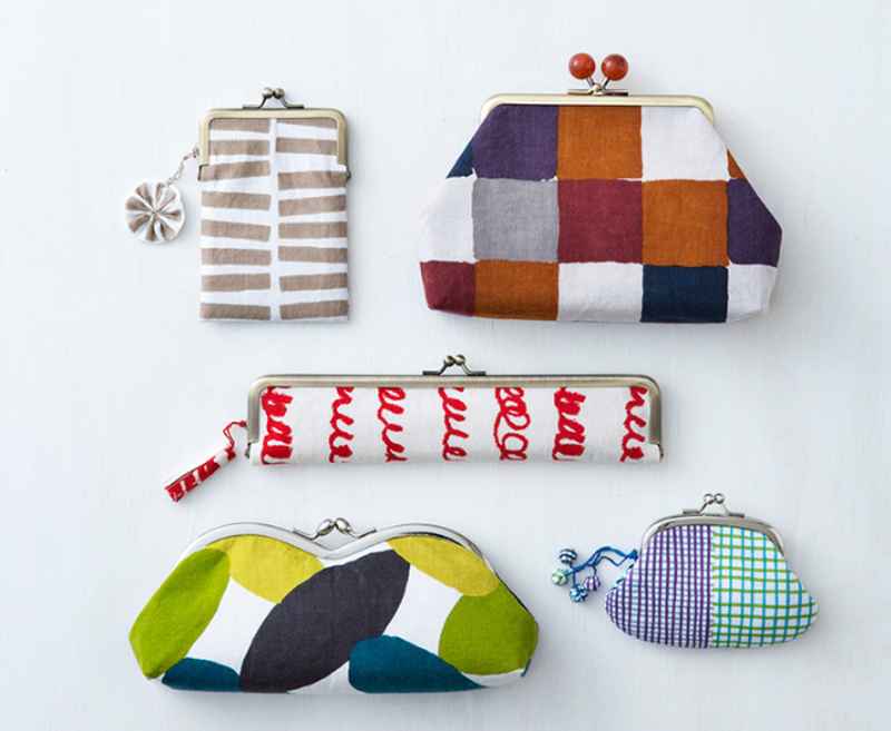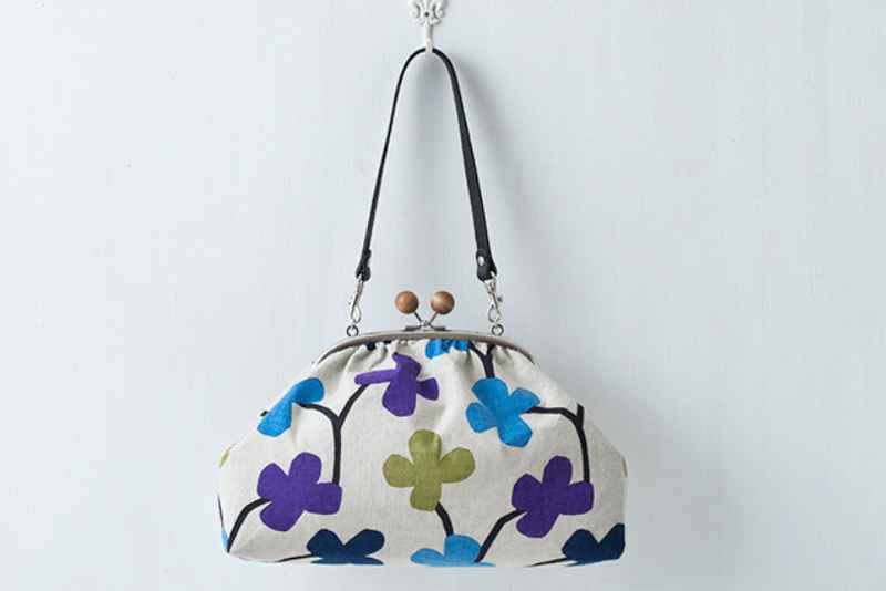 表布には、日本の四季や風情をポップに表現したテキスタイルデザインを製作する京都のブランド「SOU・SOU」の手ぬぐいを、アイテムに合わせて選んで使っています。手ぬぐいならではの、均一ではない柄の表情を楽しみながら、がまぐち作りを楽しみましょう。
