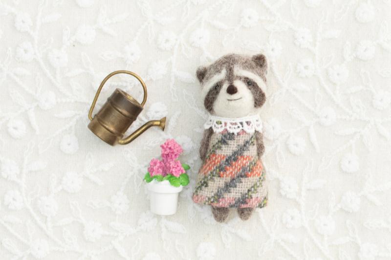 お気に入りのワンピースを着たアライグマ。お顔の模様を可愛らしく仕上げましょう。