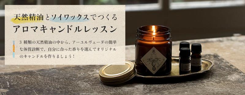 3種類の天然精油の中から、アーユルヴェーダの簡単な体質診断で自分に合った香りを選んで、オリジナルのキャンドルを作りましょう!