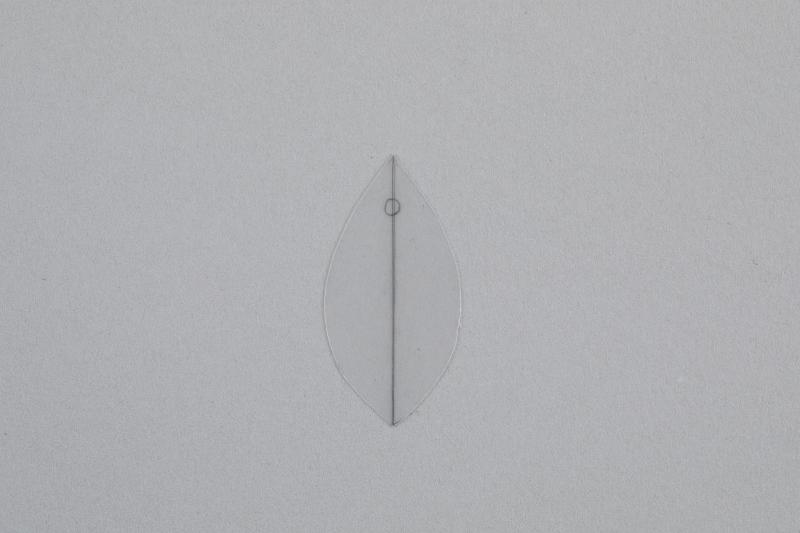 4、 キルティングラインの図案通りにカットしたパターンシートで印をつけることもできます。アップリケの型紙を作った時と同じ要領で型紙を作り、表布の上にのせて図案を描きます。