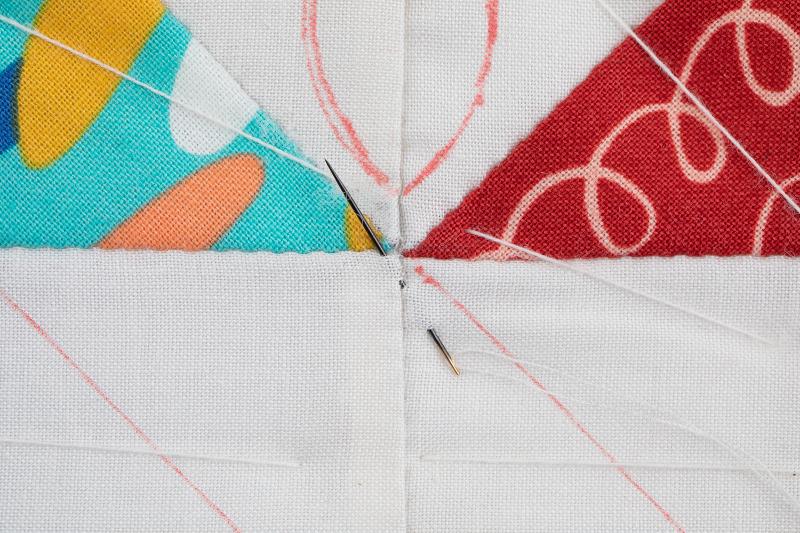 10、落としキルト→ブロックキルト→オーバーキルトの順で中心から外に向かって刺していきます。