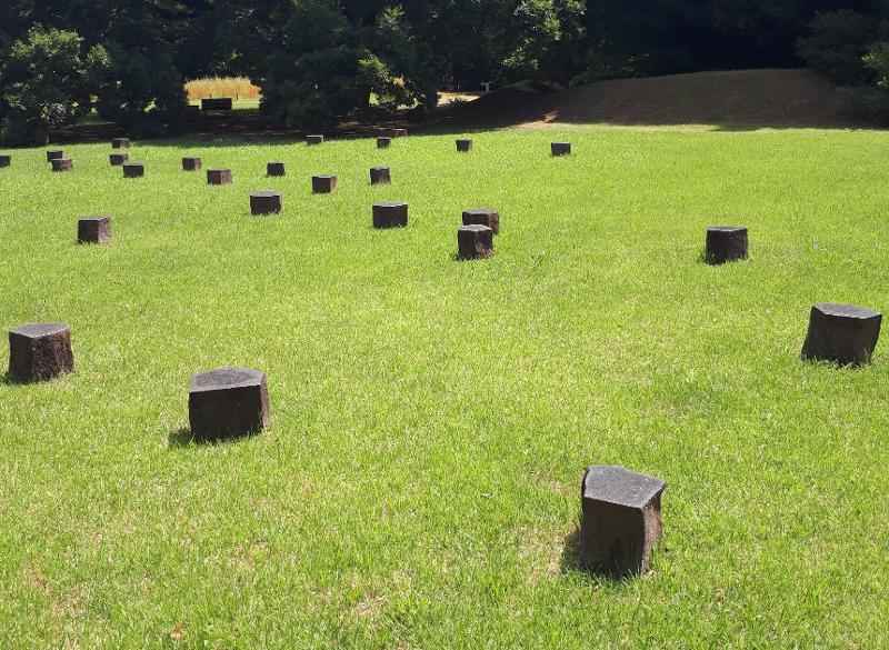 建物の柱跡が復元されている。