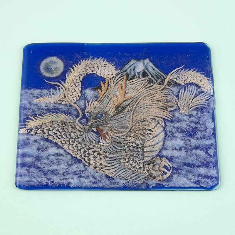 今年の作品はガラスパウダーとメタリックフレークが材料のメインとなりました。どちらもあまり使ったことがない材料でしたので何度も試し焼きをしました。その甲斐あって、龍のウロコは自分が思ってた通りに出来ました。