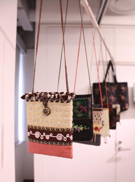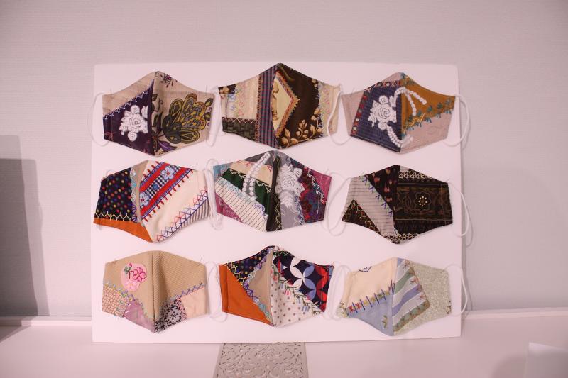 会場には大作のタペストリーのほか、バッグなど多彩な作品が展示されました。中でも注目を集めたのは、華やかなマスクの作品です。