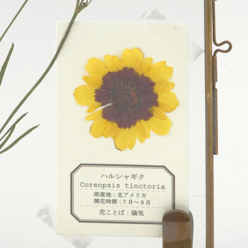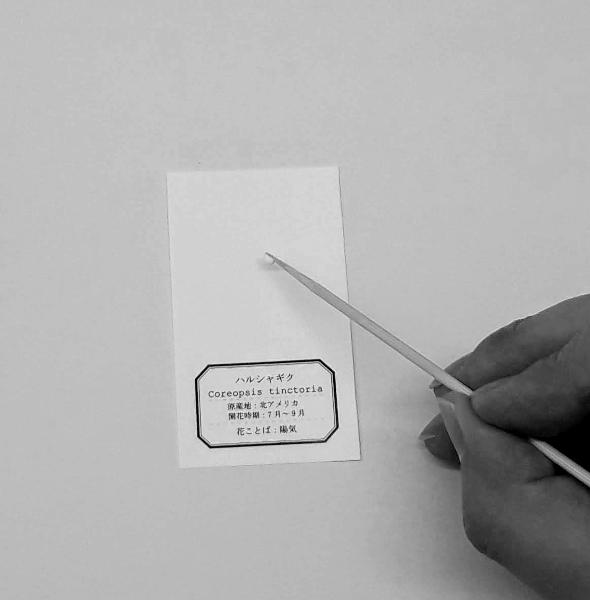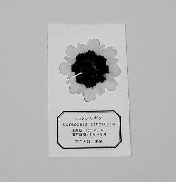 花言葉が入った標本台紙には主役のお花を貼ってあげてください。