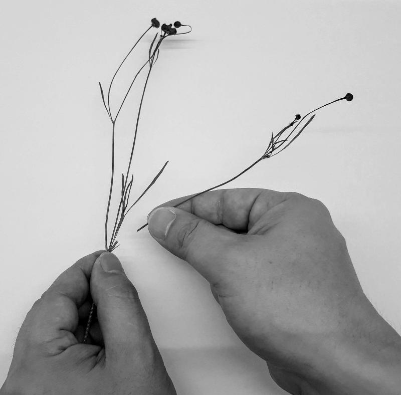 ③茎をガラスフレームに入る適当なサイズに折ります。