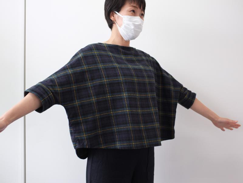チェック柄の布地のため、裁断するときにチェックのタテのラインが中心線から均等になるように気を付けました。