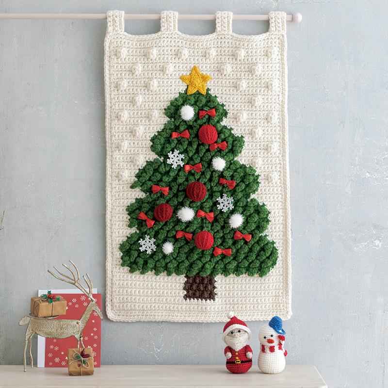 雪降るもみの木ツリータペストリーに、オーナメントを別々に編んで飾り付けを楽しんで!