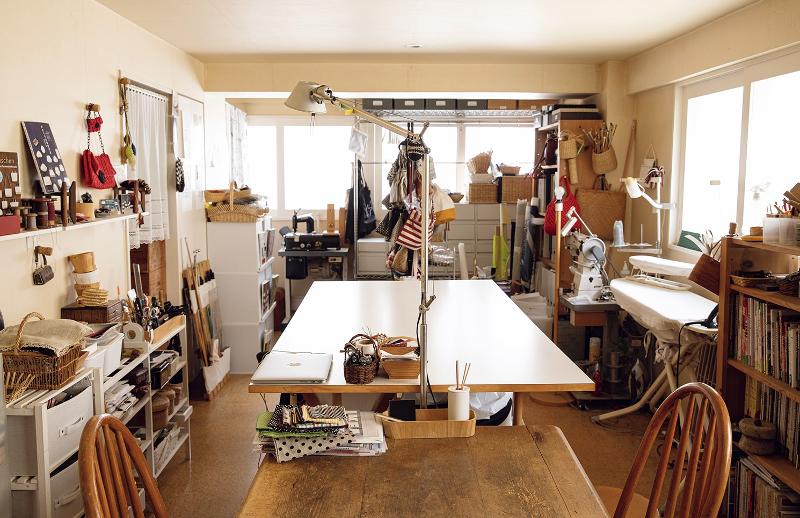 バッグやがまぐち製作の著書が多い越膳夕香さん。撮影のために来社されるときはいつも、格好いい自作のバッグからお手製のペンケースや道具入れが出てくる。そのルーツのお話をうかがいに、自宅教室も開いているアトリエを訪ねた。