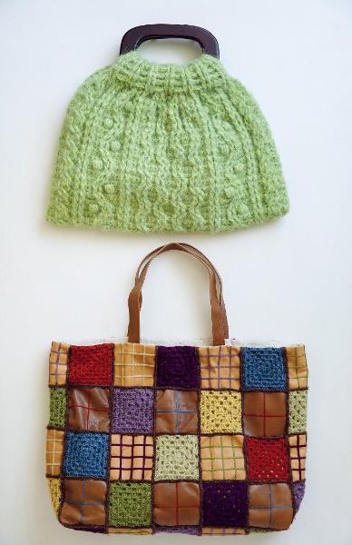 上は「かぎ針編みでアランを」というお題で、下は革と毛糸という異素材ミックスを楽しんだ。