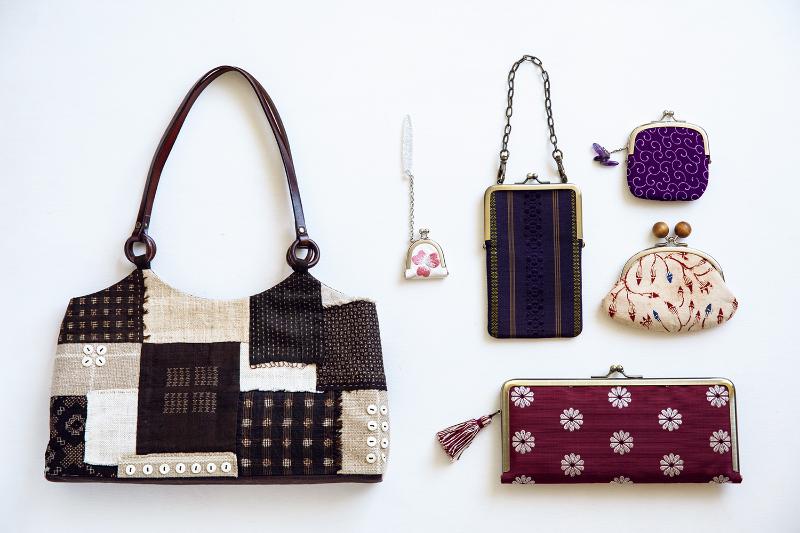 着物地や帯地、更紗を使った、和テイストの作品。